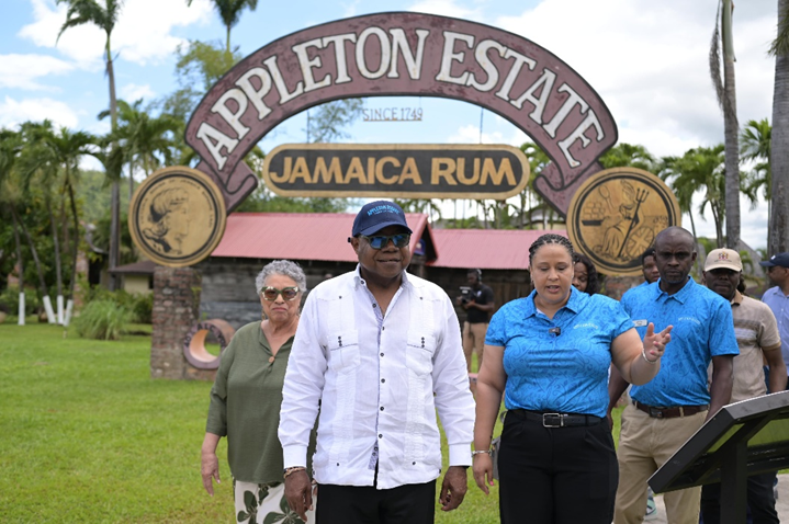Pictured: Minister of Tourism, Hon Edmund Bartlett is guided by Appleton Estate Manager Janine Hanson, during his official tour of the South Coast. Looking on are Master Blender, Joy Spencer (L) and other Appleton staff and media who participated on the tour on Thursday, April 23, 2026.