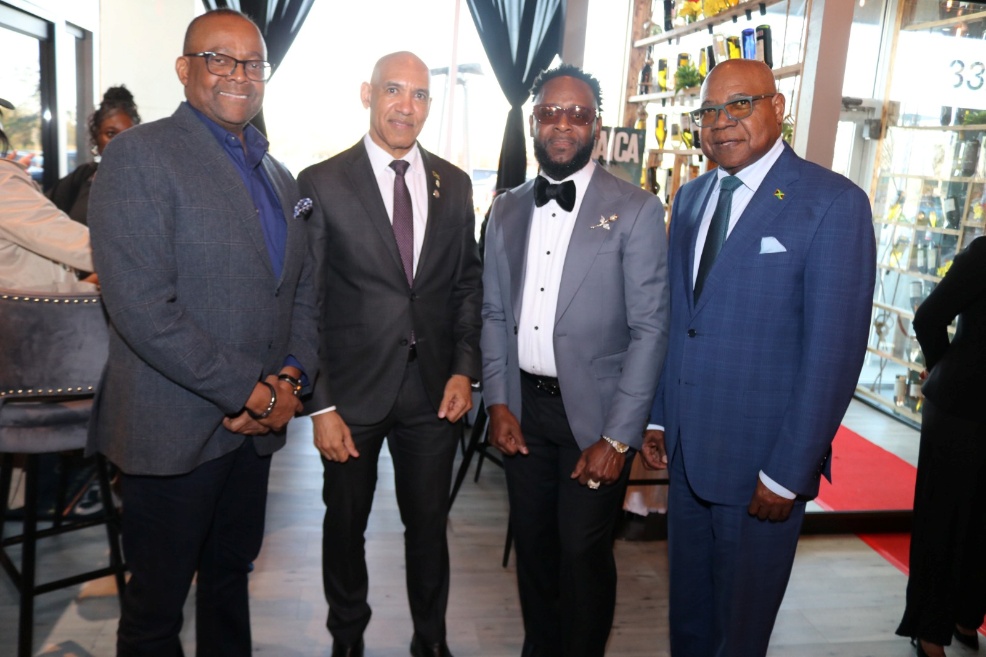 Pictured: Minister of Tourism, Hon Edmund Bartlett (R) pauses for a photo opportunity with His Excellency, Ambassador for Jamaica to the United States, Major General (Ret’d) Anthony Anderson (1st R) ahead of the Travel Agents’ Reception on Tuesday April 7, 2026. Joining in moment are (L-R) Donovan White, Director of Tourism and Donovan Vassell, owner of Catherine’s restaurant, the venue of the reception.
